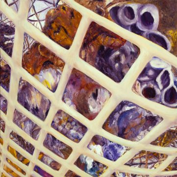 Inspired by… nature’s organic materials randomly layered into a hard plastic container effectively holding it all in. The collage of nature’s elements create mini vignettes…