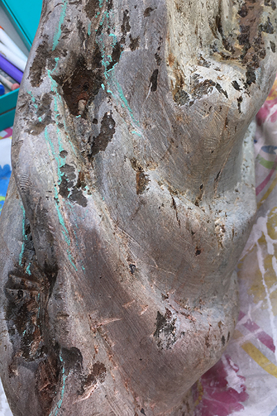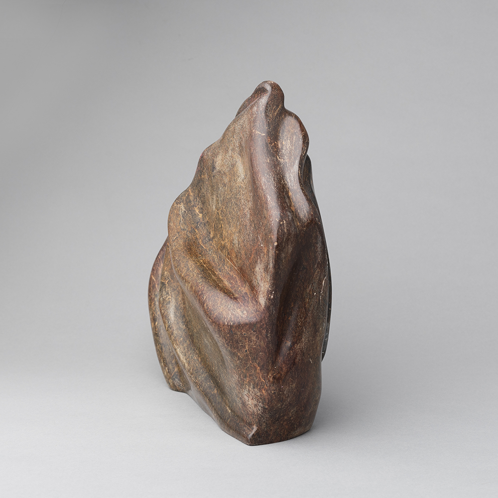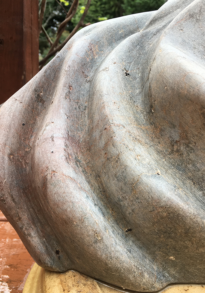 The sculpting process began with digging and transporting the stone to the studio. All stones have unique properties, this soapstone had iron pockets and veins throughout the stone. To reach the final stage the stone had to be carved with a chisel, sanded multiple times, waxed and buffed.